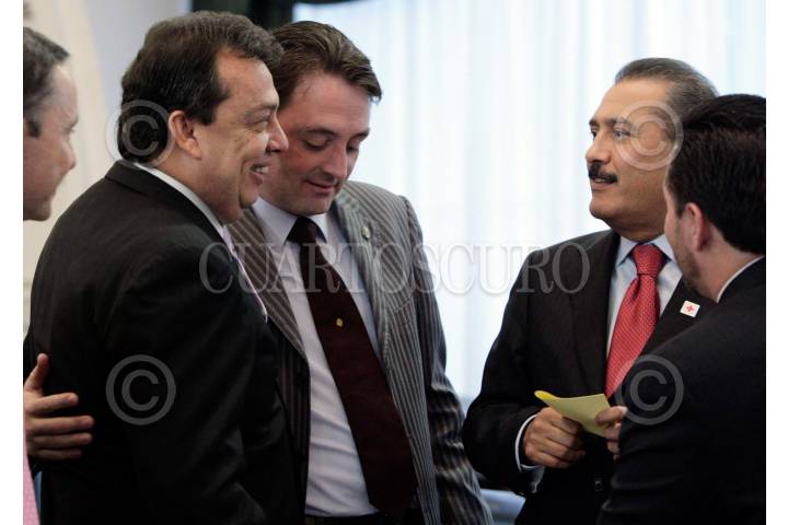 MÉXICO, D.F., 11MARZO2008.- Los senadores Angel Aguirre, Francisco Xavier Berganza y Manlio Fabio Beltrones, durante la sesión en la Cámara de Senadores. FOTO: CUARTOSCURO.COM