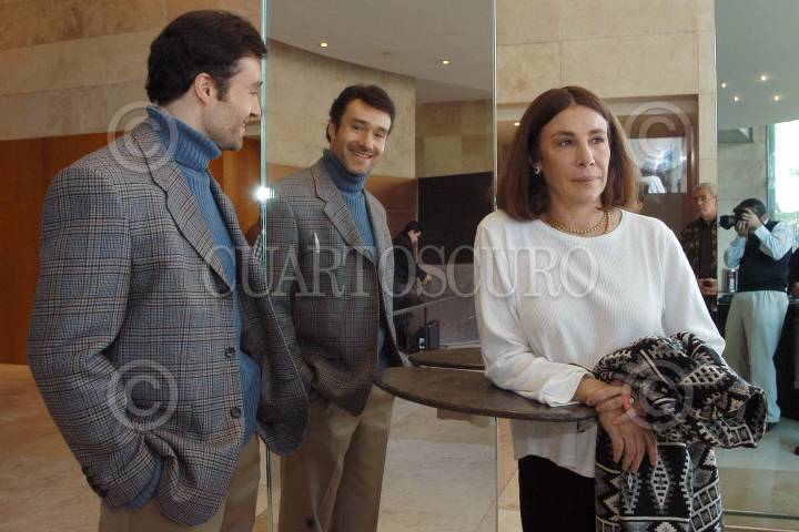 México D.F. 22 ENERO 2004.- El actor Odiseo Bichir y la directora Sabrina Berman durante el anuncio del reestreno de la obra ¨Extras¨. Los hermanos Bruno, Odiseo y Demian Bichir actuaran en el Teatro del Centro de Nacional de las Artes. FOTO: Germán Romero/CUARTOSCURO.COM