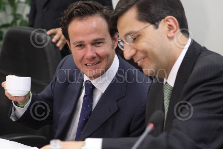 MÉXICO, D.F., 28SEPTIEMBRE2010.- Bernardo de la Garza, presidente de la Comisión Nacional de Cultura Física y Deporte y Javier Orozco, presidente de la Comisión de la Juventud y Deporte del Senado de la República durante la comparecencia del primero en la glosa del IV Informe de Gobierno del Presidente, Felipe Calderón. FOTO: MOISÉS PABLO/CUARTOSCURO.COM