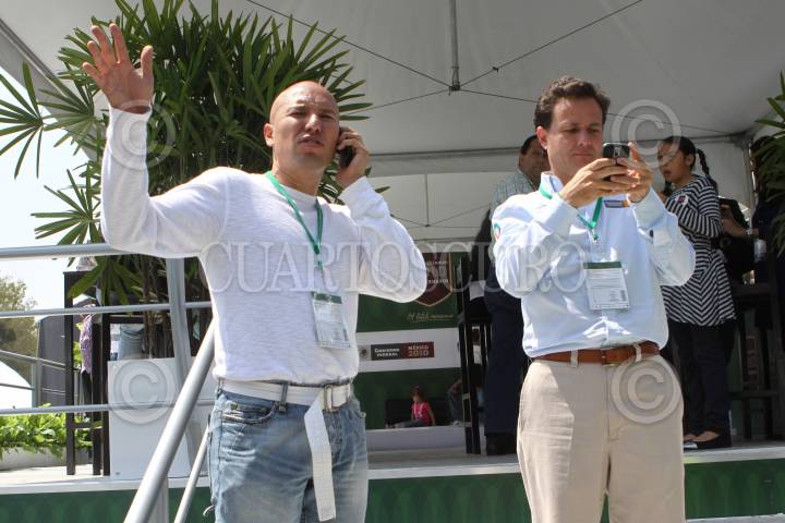 MÉXICO, D.F., 09OCTUBRE2010.- El velocista Alejandro Cardenas y titular del Compromiso Integral de México con sus Atletas (CIMA) y Bernardo de la Garza, titular de la CONADE durante el Festival Olímpico del Bicentenario que se realiza sobre el Paseo de la Reforma y en el que se presentarán atletas mexicanos. FOTO: RODOLFO ANGULO/CUARTOSCURO.COM