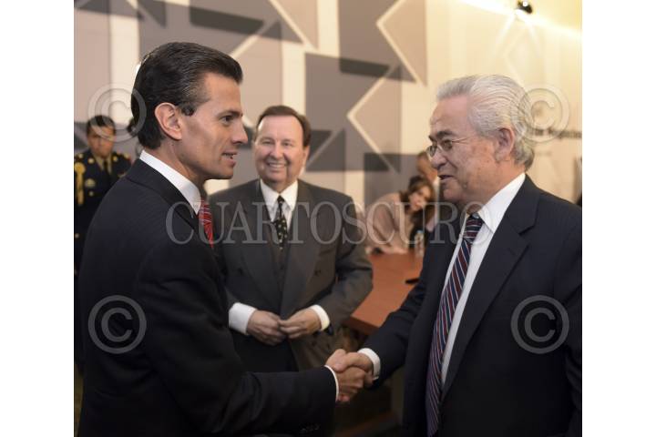 MÉXICO, D.F., 09JULIO2015.- El Consejo Mexicano de Negocios anunció ante el Presidente Enrique Peña Nieto inversiones por 33 mil millones de dólares, equivalentes a más de 520 mil millones de pesos, para el año 2015. “Esta inversión reafirma su confianza en México y su firme convicción de que en nuestro país hay condiciones óptimas para invertir”, afirmó el Primer Mandatario de la Nación. En la imagen el Jefe del Ejecutivo saluda a Bernardo Quintana, presidente de ICA. FOTO: PRESIDENCIA /CUARTOSCURO.COM