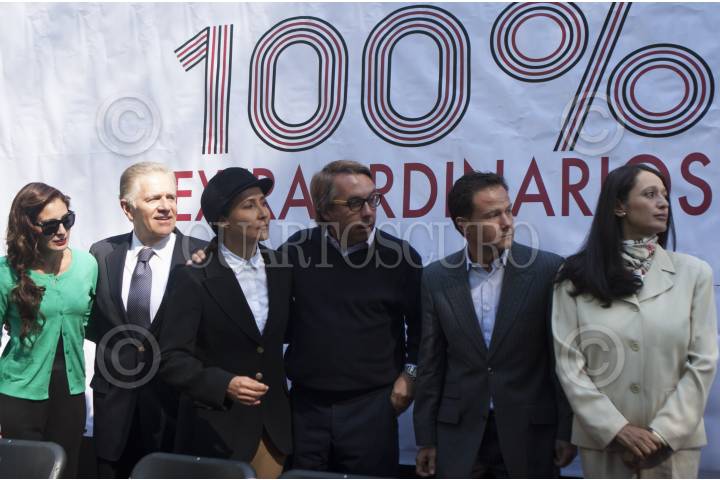 MÉXICO, D.F., 04OCTUBRE2012.- La clavadista, Paola Espinoza, Carlos Padilla, presidente del Comite Olimpico Mexicano, la fotógrafa, Gabriela Saavedra, Emilio Azcarrga Jean, presidente de grupo Televisa, Bernardo de la Garza, Director de la Comisión Nacional del Deporte y la directora del Museo de la Ciudad de México fueron invitados especiales a la inuaguración de la exposición, "100% Extraordinarios" de Gabriela Saavedra y Gabriel Rozycki, la mañana de hoy en Paseo de la Reforma y la cual retrata a los deportistas mas sobresalientes de los último años en cada una de las ramas que desarrollan. FOTO: FRANCISCO RODRÍGUEZ /CUARTOSCURO.COM