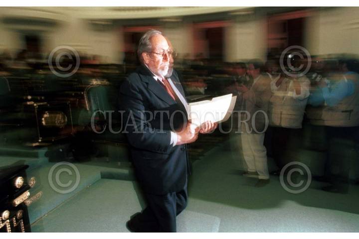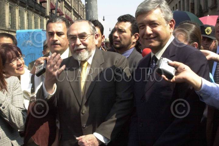 Bernardo Bátiz, procurador de justicia, y Andrés Maunuel López Obrador, jefe de Gobierno, a la salida de la Suprema Corte de Justicia después de reunirse con el presidente magistrado Mariano Asuela. FOTO: Sandra Perdomo/CUARTOSCURO.COM