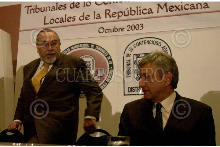 Bernardo Bátiz, procurador de justicia, y el jefe de Gobierno Andrés Manuel Lópéz Obrador, a su llegada a la inauguración del Primer congreso internacional administrativo de la República Mexicana. FOTO: Sandra Perdomo/ CUARTOSCURO.COM
