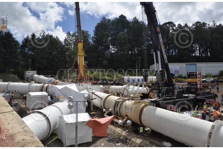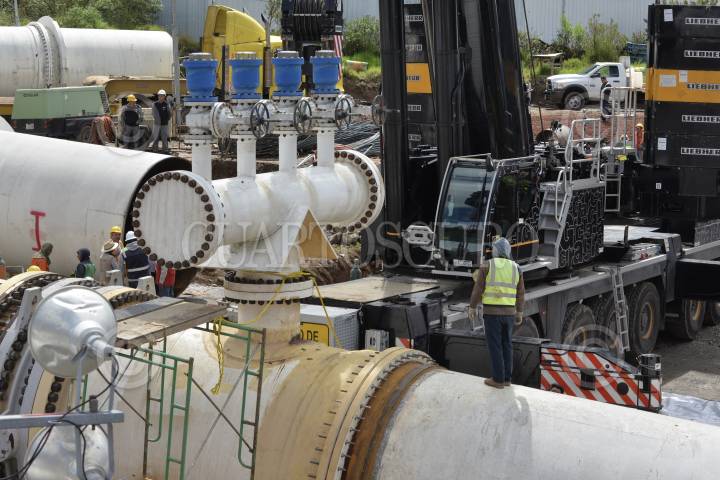 VILLA VICTORIA, ESTADO DE MÉXICO, 31OCTUBRE2018.- En la Planta Potabilizadora de Berros del Sistema Cutzamala se llevan a cabo trabajos de manteniendo de este sistema, lo cual afectó a 13 municipios en el Estado de México y la Ciudad de México, dejando en algunos casos sin el vital líquido. Los trabajos consisten en instalar un tubo en forma de k que permitirá instalar los motores de la planta a la líneas existentes y la nueva que se colocará. FOTO: ARTEMIO GUERRA BAZ /CUARTOSCURO.COM