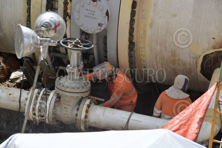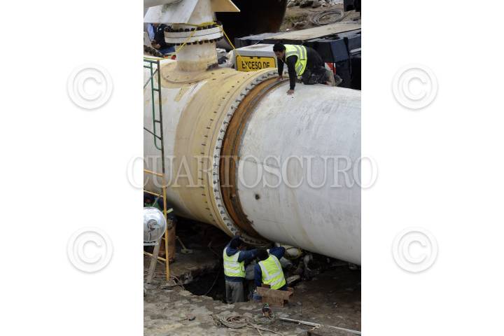 VILLA DE ALLENDE, ESTADO DE MÉXICO, 05NOVIEMBRE2018.- Personal de CONAGUA continúa los trabajos de reparación del Sistema Cutzamala después de que sufriera un desplazamiento la pieza denominada K invertida que serviría como Puente entre la línea de alta presión 1 y 2 de este sistema, y fue tomada la decisión de retirarla, en algunos lugares el abasto de agua se regularizaría hasta el sábado. FOTO: ARTEMIO GUERRA BAZ /CUARTOSCURO.COM