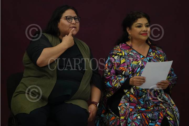 CIUDAD DE MÉXICO, 14ENERO2025.- Citlalli Hernández, secretaria de las Mujeres, y Clara Brugada, jefa de gobierno de la Ciudad de México, durante el foro "República de y para mujeres en el marco del Plan Nacional de Desarrollo 2025-2030". FOTO: GALO CAÑAS/CUARTOSCURO.COM