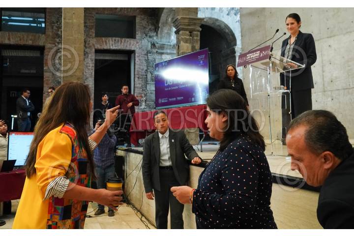 CIUDAD DE MÉXICO, 14ENERO2025.- La activista trans Natalia Lane se manifestó durante la presentación de Bertha Alcalde Luján, fiscal General de Justicia de la Ciudad de México, debido a la posibilidad de que su agresor por intento de feminicidio quede en libertad tras tres años en busca de justicia, lo anterior durante el foro "República de y para mujeres en el marco del Plan Nacional de Desarrollo 2025-2030". FOTO: GALO CAÑAS/CUARTOSCURO.COM