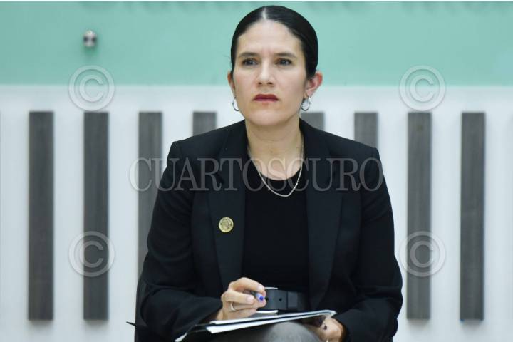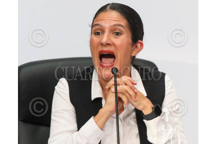 CIUDAD DE MÉXICO. 17SEPTIEMBRE2025.- La fiscal Capitalina en la conferencia de prensa de la jefa de Gobierno de la ciudad, Clara Brugada, esta tarde en el Palacio del Ayuntamiento. FOTO: VICTORIA VALTIERRA/CUARTOSCURO.COM