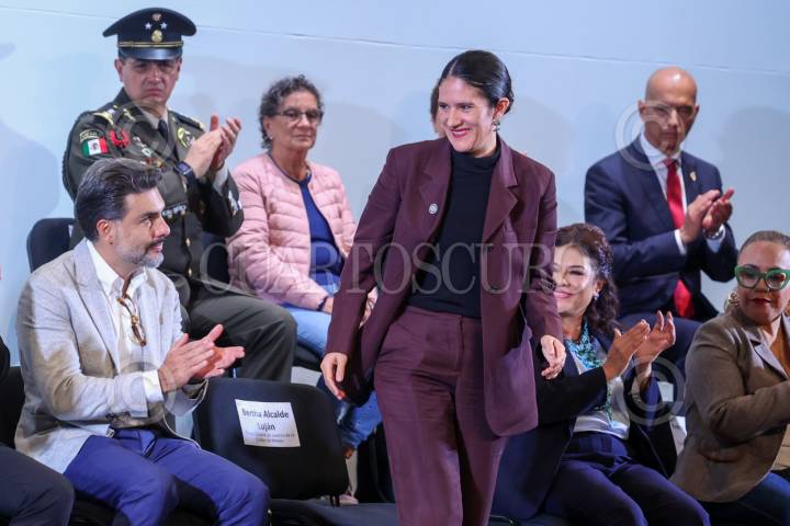 CIUDAD DE MÉXICO, 11SEPTIEMBRE2025.- Bertha Alcalde Luján, titular de la FGJCDMX, durante la ceremonia de incorporación de la Generación 2025 de Agentes de la Policía de Investigación a la Fiscalía General de la Ciudad de México, en el Teatro de la Ciudad Esperanza Iris. FOTO: MOISÉS PABLO/CUARTOSCURO.COM