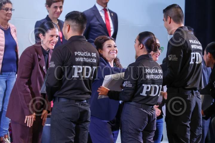 CIUDAD DE MÉXICO, 11SEPTIEMBRE2025.- Clara Brugada Molina, Jefa de Gobierno, y Bertha Alcalde Luján, titular de la FGJCDMX,, encabezaron la ceremonia de incorporación de la Generación 2025 de Agentes de la Policía de Investigación a la Fiscalía General de la Ciudad de México, en el Teatro de la Ciudad Esperanza Iris. FOTO: MOISÉS PABLO/CUARTOSCURO.COM