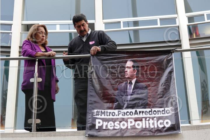 La senadora Bertha Caraveo y el ex gobernador de Chihuahua Javier Corral, colocaron una loneta impresa para exigir justicia por el preso político Francisco González Arredondo, exfiscal que encabezó las investigaciones por corrupción contra el exgobernador priista César Duarte y decenas de exfuncionarios, políticos y empresarios