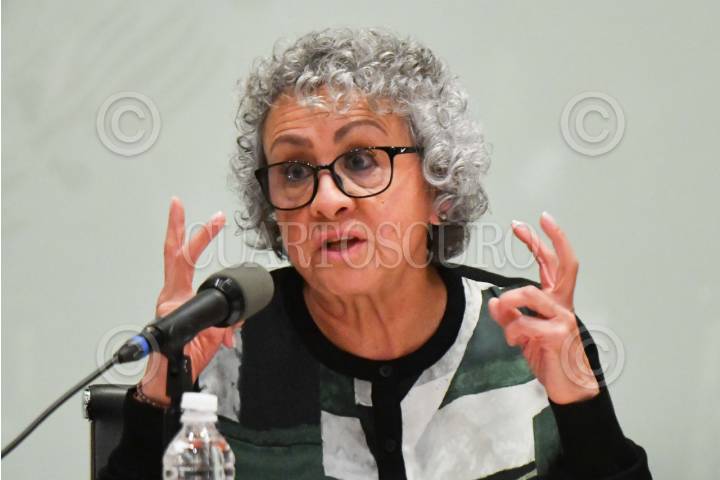 CIUDAD DE MÉXICO, 22NOVIEMBRE2024.- Bertha Gómez Castro, subsecretaria de Egresos de la Secretaría de Hacienda y Crédito Público, durante la conferencia matutina realizada en Palacio Nacional, en la que se habló sobre los lineamientos y desglose del paquete económico 2025. FOTO: MARIO JASSO/CUARTOSCURO.COM