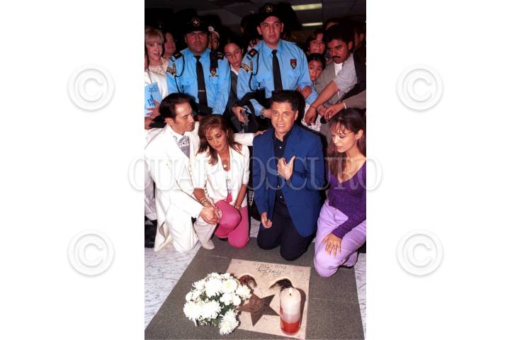 El conductor de televisión Mario Bezares, después de hacer la develación de la placa en la que estan grabadas sus huellas, en el Paseo de las Luminarias en el Centro Comercial Galerias, dirige unas palabras en el lugar donde se encuentran plasmadas las huellas de su amigo el fallecido Paco Stanley. FOTO: Oswaldo Ramírez/CUARTOSCURO.COM