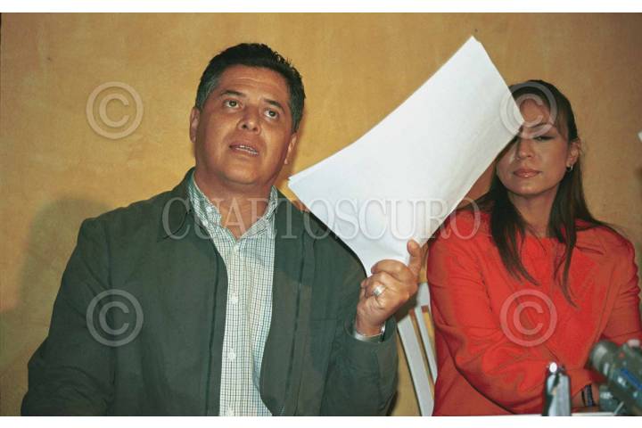 Mario Bezares ofreció una conferencia de prensa junto a su esposa Brenda en un hotel donde es sujeto a arraigo judicial. FOTO: Pedro Mera/CUARTOSCURO.