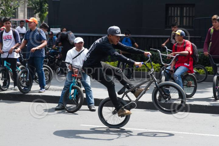 CIUDAD DE MÉXICO, 09SEPTIEMBRE2018.- Jóvenes en bicis de acrobacia "BMX" pasean por el zócalo capitalino, a su paso ofrecieron algunos saltos y suertes. FOTO: MOISÉS PABLO /CUARTOSUCRO.COM