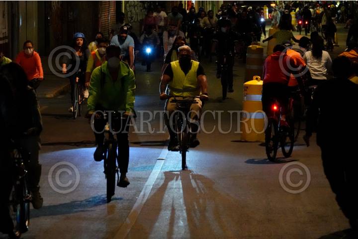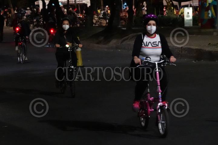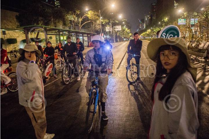 Familias y jóvenes acudieron al Paseo Ciclista Nocturno, que dio inicio en Plaza Tlaxcoaque, en el Centro Histórico y finalizará en la Fuente de Petróleos