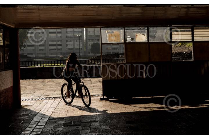 CIUDAD DE MÉXICO, 17MAYO2018.- Una mujer cruza en bicicleta el tunel peatonal de Tlatelolco que pasa bajo Eje Central. FOTO: TERCERO DÍAZ /CUARTOSCURO.COM