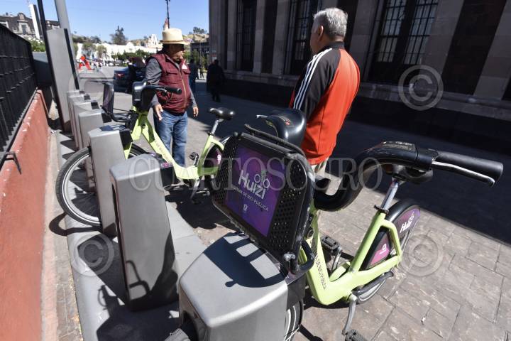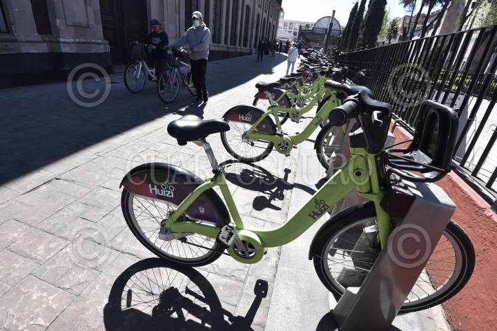 TOLUCA, ESTADO DE MÉXICO, 30ENERO2019.- Después del desabasto de gasolina que se ha presentado en el Valle de Toluca, muchas personas optaron por movilizarse en bicicleta; en la cuidad de Toluca se cuenta con el Sistema de Bici Pública Huizi, el cual no es utilizado por la población, a pesar de contar con varias islas distribuidas en diversos puntos para poder tomar las bicicletas. FOTO: ARTEMIO GUERRA BAZ /CUARTOSCURO.COM
