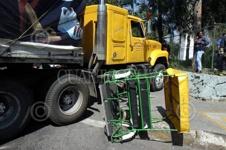 MEXICO D.F. 03NOVIEMBRE2005.- El conductor de un bicitaxi murió atropellado por un trailer en la avenida 100 metros y calle 14 colonia Guadalupe. FOTO: Pedro Marrufo/CUARTOSCURO.COM