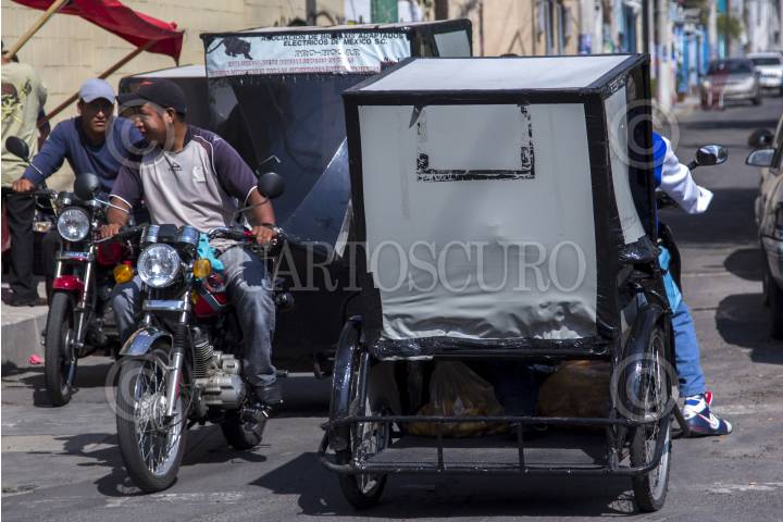 MÉXICO, D.F., 18MAYO2015.- En la ciudad, un medio de transporte recurrente principalmente en las colonias populares son los Mototaxis que en un principio era un transporte en bicicleta y que hasta el momento estos operadores y grupos no han sido regulados debidamente lo que ha causado que haya un incremento sin orden. FOTO: ENRIQUE ORDÓÑEZ /CUARTOSCURO.COM