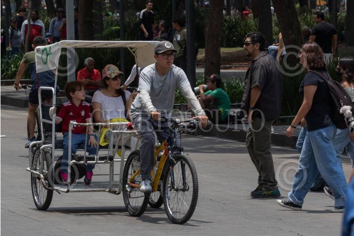 MEXDF23JUNIO2004.- Bicitaxis toman un descanso en el zócalo capitalino. FOTO: Eunice Adorno/CUARTOSCURO.COM