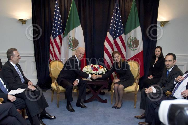 MÉXICO, D.F., 05MARZO2012.- Joseph Biben, Vicepresidente de los Estados Unidos junto a Josefina Vázquez Mota, precandidata a la presidencia de4 la república por el PAN durante la reunión que mantuvieron como parte de su visita al país. FOTO: CUARTOCURO.COM