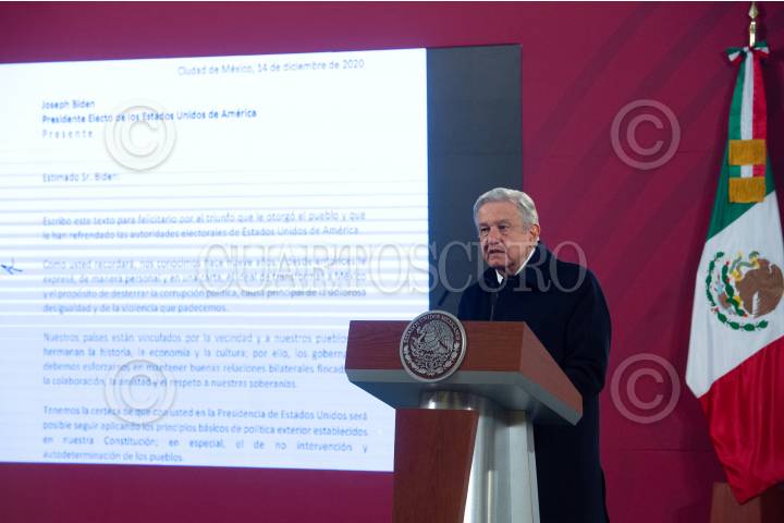 Andrés Manuel López Obrador, Presidente de México, durante conferencia matutina mostró la carta que le escribió al presidente electo de EUA, José Biden.