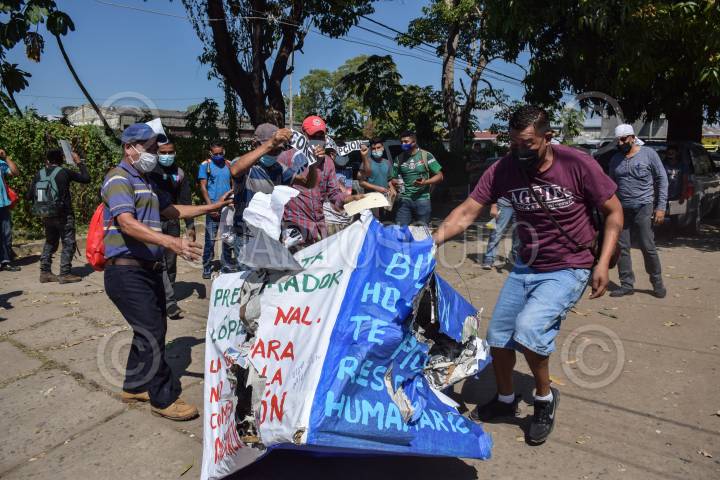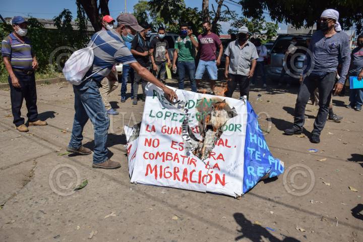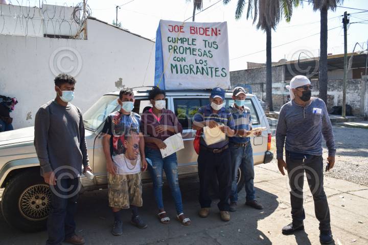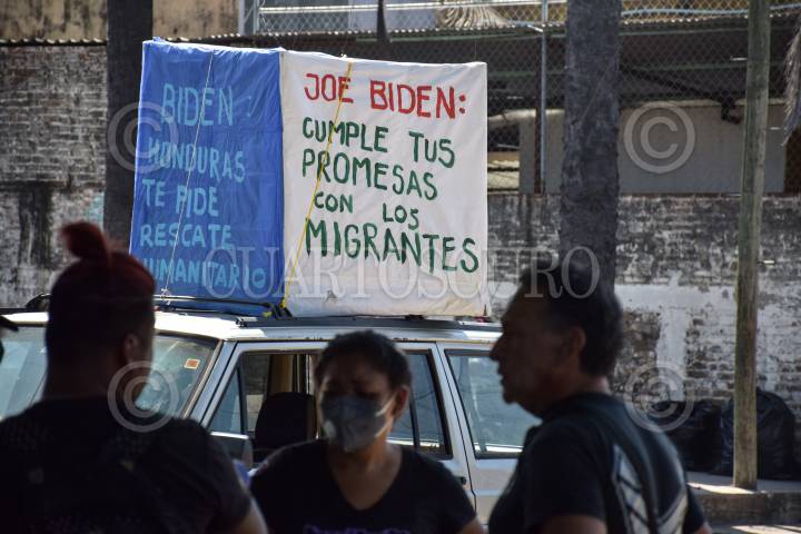 Migrantes hondureños protesta en las inmediaciones de COMAR para pedirle a Joe Biden el nuevo presidente de Estados Unidos que necesitan ayuda humanitaria en Honduras.