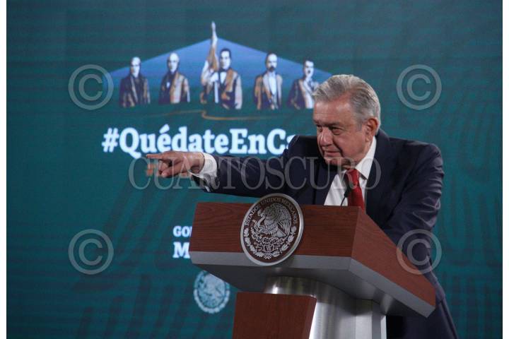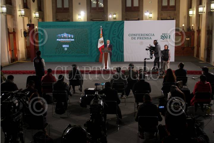 Andrés Manuel López Obrador, presidente de México, durante la conferencia matutina que se lleva a cabo en Palacio Nacional. El mandatario destacó el tema de la llegada de Biden a la presidencia de los Estados Unidos; declaró que no hay enemistades hasta ahora y espera que sean países vecinos cercanos y no lejanos.