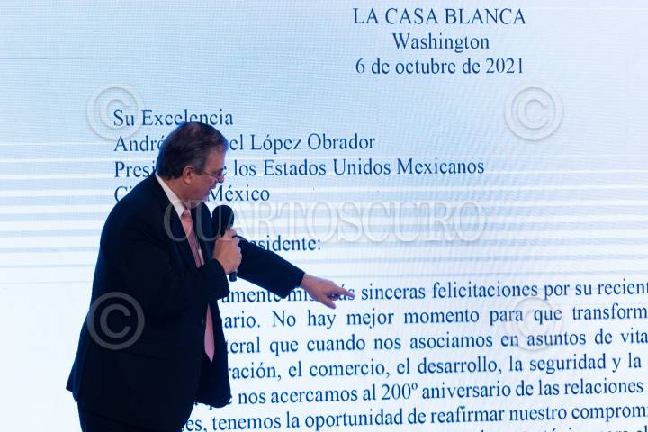 Marcelo Ebrard Casaubon, secretario de Relaciones Exteriores, leyó una carta del Presidente Joe Biden, enviada a al Presidente Andrés Manuel López Obrador.