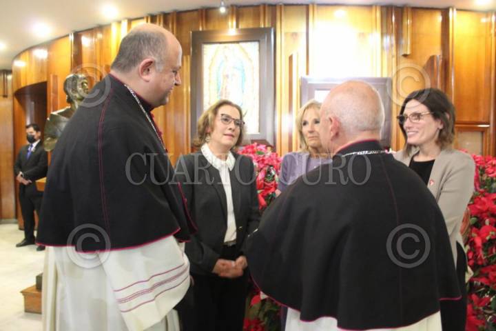 Jill Biden, primera Dama de Estados Unidos, en la Insigne y Nacional Basílica de Santa María de Guadalupe acompañada de Beatriz Gutiérrez Müller, esposa del presidente Andrés Manuel López Obrador.
