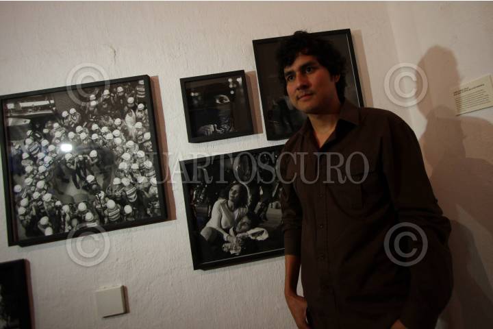 OAXACA, OAXACA., 05AGOSTO2016.- La noche de este viernes se realizó la premiación y la inauguración de la exposición fotográfica de la Bienal Fotográfica Oaxaca (2016) en el Centro Fotografía Manuel Álvarez Bravo. El ganador de la BFO fue el joven Aarón Cadena Ovalle con el trabajo "Black Bloc - Estética de la Violencia" el cual fue retratado en Brasil. Además recibieron mención honorífica Pedro Solano, Lucía Castañeda y Juan Cardona. El jurado estuvo representado por el director de la agencia Cuartoscuro, Pedro Valtierra. FOTO: ARTURO PÉREZ ALFONSO /CUARTOSCURO.COM