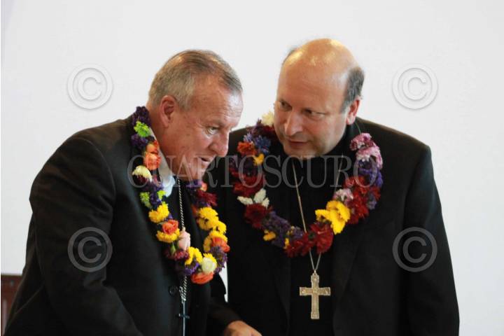 SAN LUIS POTOSÍ, SAN LUIS POTOSÍ, 27ENERO2017.- Jesús Carlos Cabrero Romero, arzobispo de San Luis Potosí y Franco Coppola, nuncio apostólico en México, durante la inauguración del XVII Congreso Nacional de la Infancia y Adolescencia Misionera (CONAIM) que se realiza cada dos años, desde 1982, en una diócesis distinta del país. FOTO: MARCELO PALACIOS /CUARTOSCURO.COM