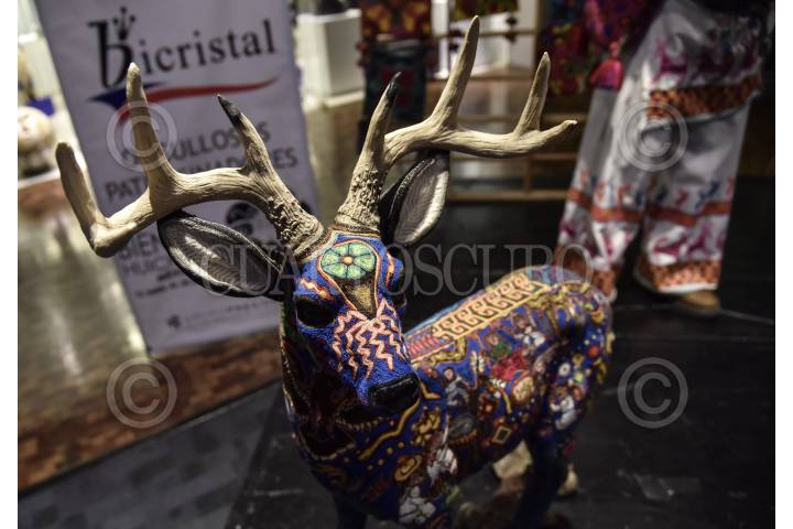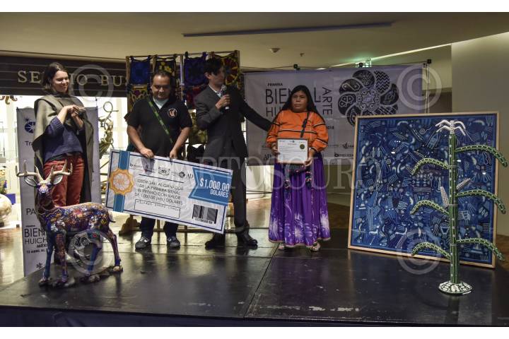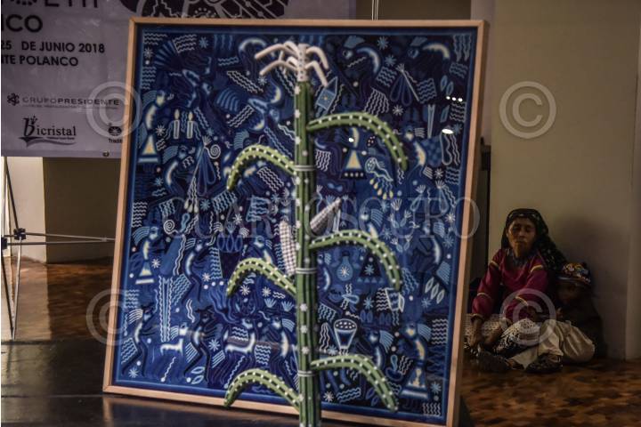CIUDAD DE MÉXICO, 28JUNIO2018.- Se llevó a cabo la ceremonia de Premiación y cierre de la Primera Bienal de Arte Huichol en México celebrado en el lobby del hotel Presidente Intercontinental. La artesanía premiada en esta primera edición fue Hilaria Sánchez Carrillo. FOTO: MARIO JASSO /CUARTOSCURO.COM