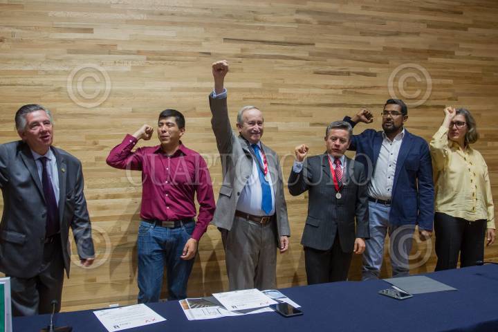 CIUDAD DE MÉXICO, 09AGOSTO2018.- El arquitecto Xavier Cortés Rocha y Germán B. Salazar, ganaron medalla de plata en la XIV Bienal Nacional e Internacional de Arquitectura Mexicana 2018 por la restauración de los anexos de la calle de la Pérpetua, Antiguo Palacio de Medicina, y el Reordenamiento y ampliación de los patios de importación del cruce fronterizo Mesa de Otay, respectivamente, durante la conferencia de prensa donde presentaron a otros ganadores de la Facultad de Arquitectura. FOTO: ISAAC ESQUIVEL /CUARTOSCURO.COM