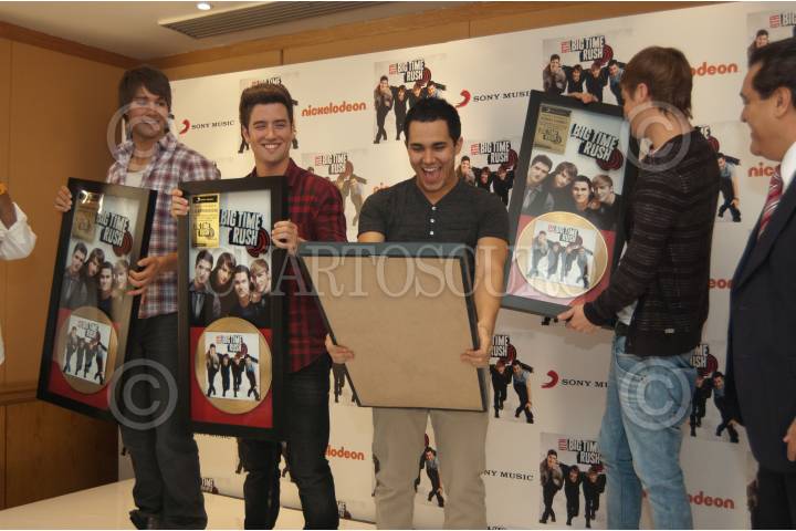 MÉXICO, D.F., 30SEPTIEMBRE2011.- La banda de Pop, "Big Time Rush" recibió, por parte de sus disquera, "Disco de Oro" por sus más de 30 mil copias vendidas de su álbum, "BTR" y que fue grabado en los Angeles California, Estados Unidos y que incluye diversos géneros como, Pop, Rock y Dance. FOTO: FRANCISCO RODRÍGUEZ/CUARTOSCURO.COM