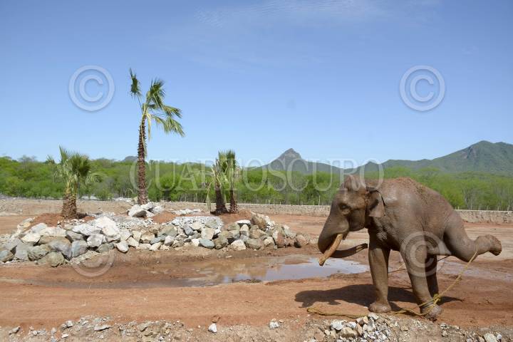 El elefante Big Boy llega a su santuario en la sierra construido cerca de la comunidad de La Campana, ubicado a 10 kilómetros al norte de Culiacán. Este hermoso ejemplar de origen asiático tiene 40 años y pesa casi 4 toneladas.