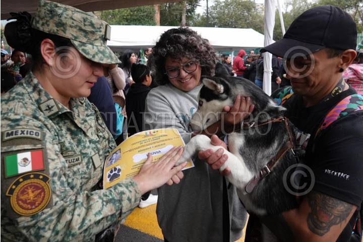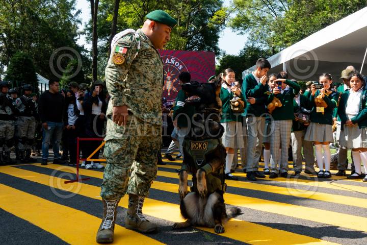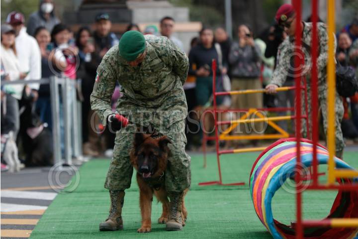 CIUDAD DE MÉXICO, 07ENERO2024.- Se llevó a cabo la celebración del Primer Cumpleaños del Soldado Arkadas en la que lo acompañaron binomios caninos y el festejo con un pastel; durante el evento se realizaron certificado de aprobación de alta canina y fotografías con el cumpleañero. El acto se realizó en el monumento a Protejo en las instalaciones de Campo Militar Marte. FOTO: GRACIELA LÓPEZ/ CUARTOSCURO.COM