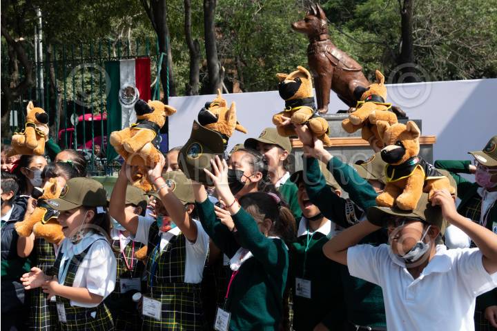 CIUDAD DE MÉXICO, 21SEPTIEMBRE2023.- Luis Cresencio Sandoval, secretario de la Defensa Nacional (SEDENA), encabezó la develación de la escultura en honor al perro Proteo, fallecido durante las labores humanitarias por parte del ejército mexicano en el terremoto de Turquía. FOTO: GALO CAÑAS/CUARTOSCURO.COM