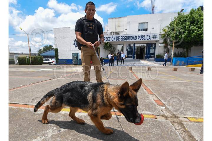 TOLUCA, ESTADO DE MÉXICO, 27JUNIO2024.- La Dirección de Seguridad Pública de Metepec tiene la Unidad Canina K9, conformada por 4 binomios caninos, recibe a un nuevo integrante Hércules un cachorro Pastor Alemán que viene a ocupar el lugar de Zeús quien murió, este cachorro será entrenado para cumplir un doble propósito que será de protección y y detección de diversas sustancias, los otros integrantes son Delta, pastor belga especializada en detección de narcóticos y papel moneda, Kiara, un labrador especializado en búsqueda de artefactos explosivos, Hachi labrador macho detección de narcóticos y papel moneda, Beretta se especializa en la detección de cadáveres. Este grupo especial ha apoyado en otros municipios en operativos interinstitucionales grandes resultados. FOTO: CRISANTA ESPINOSA AGUILAR /CUARTOSCURO.COM