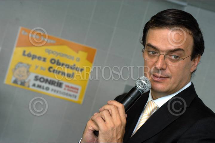 MÉXICO D.F. 27MAYO2006.- Marcelo Ebrad, candidato a jefe de gobierno del D.F. de la coalición por el Bien de Todos, recibió un reconocimiento por su trayectoria politica del Centro Internacional Biografíco, en la Torre Latino Americana. FOTO: Guillermo Perea/ CUARTOSCURO.COM