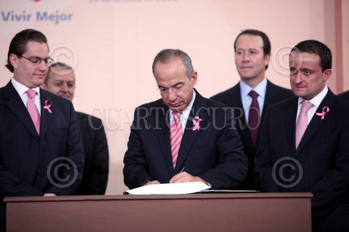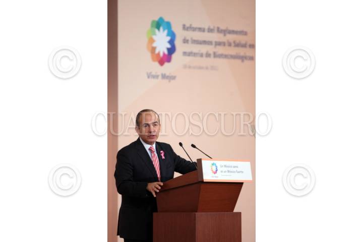 MEXICO D.F. 18OCTUBRE2011.- El Presidente, Felipe Calderón HInojosa, durante la firma a la reforma del Reglamento de Insumos para la Salud en materia de Biotecnologicos, que tuvo lugar en el salón Adolfo Lopéz Mateos de los Pinos. FOTO: ARIEL GUTIERREZ/CUARTOSCURO.COM