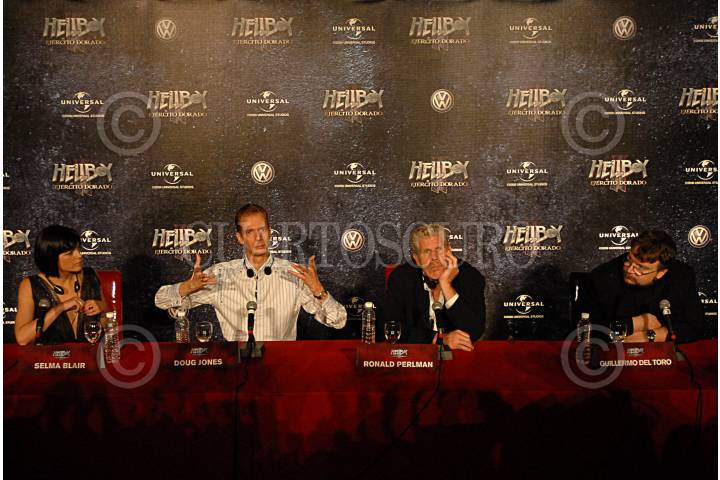 MÉXICO, D.F., 03JULIO2008.- El director Guillermo del Toro y los actores Salma Blair, Doug Jones y Ronald Perlman en conferencia de prensa sobre la presentación de la segunda parte de la adaptación del comic de Hellboy. FOTO: FELIPE CASTELLANOS/CUARTOSCURO.COM