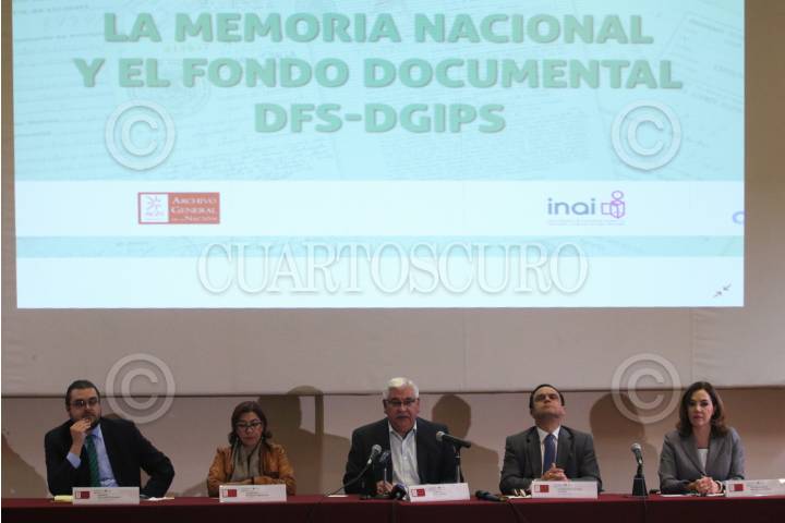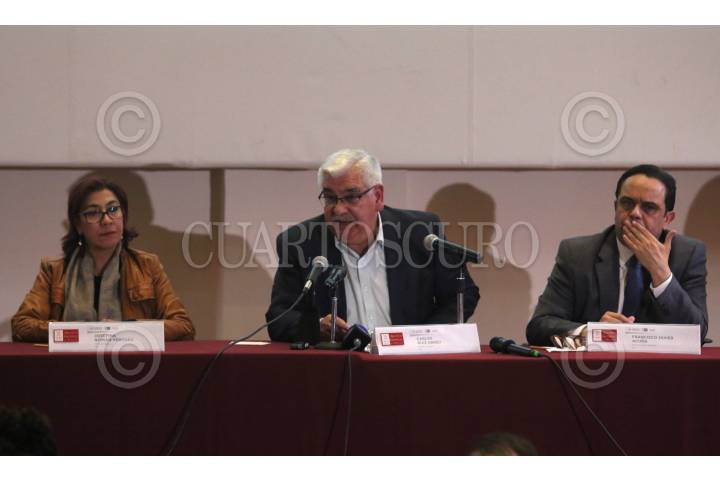 Blanca Lilia Ibarra, Carlos Ruiz Abreu, Francisco Javier, encabezaron la conferencia de prensa sobre la apertura del fondo documental en el auditorio del Palacio de Lecumberri.
