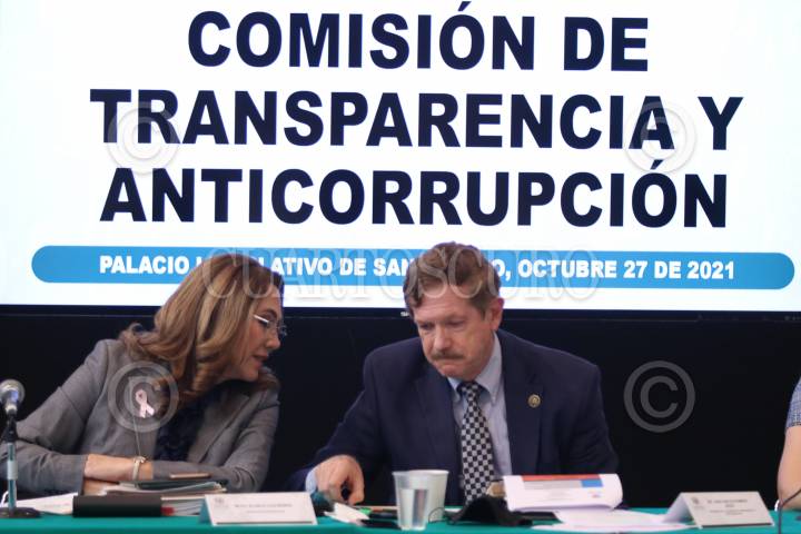 Blanca Lilia Ibarra, comisionada de INAI, y el diputado Juan Carlos Romero Hicks (PAN) encabezaron una reunión de trabajo de la Comisión de Transparencia y Anticorrupción, en la Cámara de Diputados.
