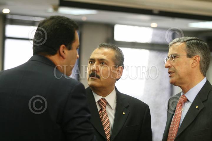 MÉXICO D.F., 21ABRIL2008.- Los senadores Manlio Fabio Bletrones, Carlos Aceves durante la sesion que se realizó en el 5 piso del senado de la republica. FOTO: SASHENKA GUTIERREZ/CUARTOSCURO.COM