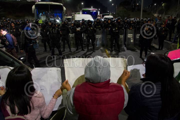 Bloqueo de familiares y vecinos de la joven María Ángela Olguín Bustamante, desaparecida el día de ayer en el paradero de Indios Verdes.