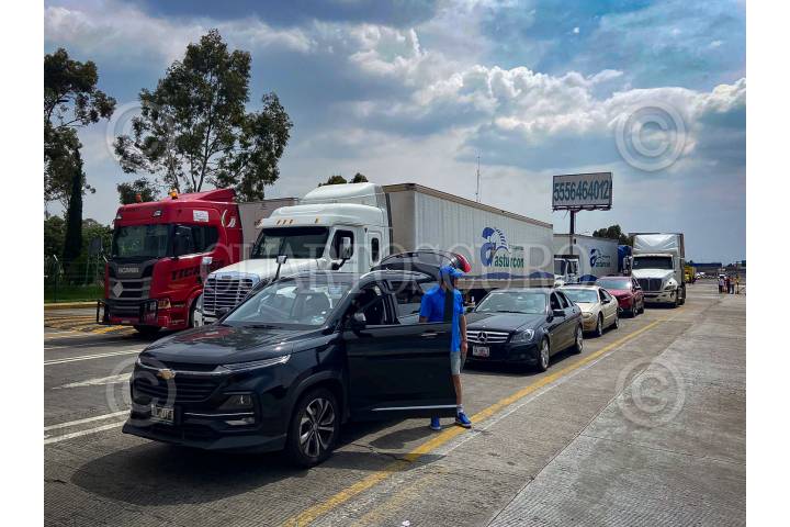 SAN MARCOS HUIXTOCO, ESTADO DE MÉXICO, 09AGOSTO2024.- Debido al cuarto día de bloqueo intermitente por parte de pobladores de Santa Rita Tlahuapan en la autopista México-Puebla, se mantienen las filas vehiculares para poder transitar por la zona. FOTOS: ROGELIO MORALES /CUARTOSCURO.COM