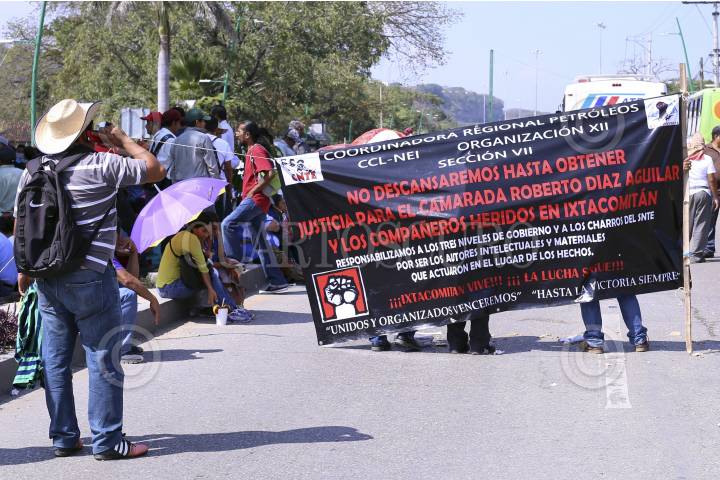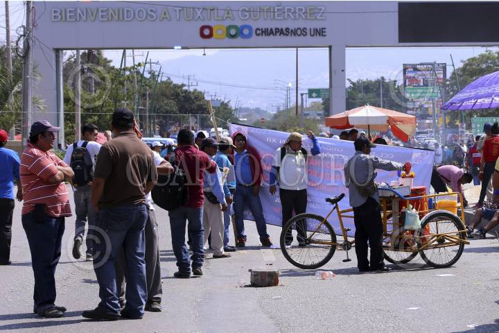 TUXTLA GUTIERREZ, CHIAPAS, 08DICIEMBRE2016.- Maestros pertenecientes a la Coordinadora Nacional de Trabajadores de la Educacion, bloquearon el acceso principal de lado poniente de la capital chiapaneca, así como distintos puntos en el Estado, para exigir al gobierno federal la apertura de la mesa de negociacion para dar cumplimiento a compromisos pendientes, durante el bloqueo se estuvo dando paso intermitente a vehiculos particulares con personas delicadas de salud, vehiculos de emergencia y a "peregrinos" que van llegando a la ciudad. FOTO: JESÚS GARCÍA /CUARTOSCURO.COM